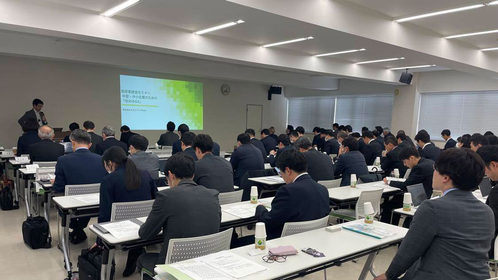 弊社代表田原が、経済産業省が八王子商工会議所で開催したGX人材育成研修会に、中堅・中小企業のための「攻めのGX」をテーマに登壇いたしました。