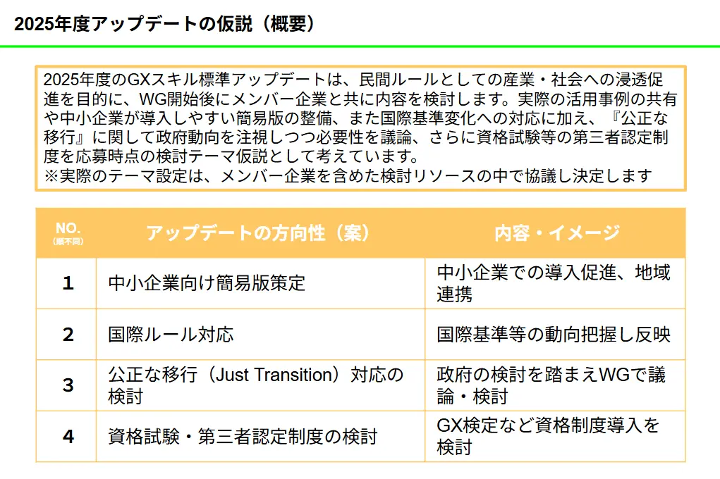 弊社は、2050年カーボンニュートラル実現と社会変革を見据えた産官学協働の場であるGXリーグ内で2023年度に「GX人材市場創造WG」を立ち上げ、代表リーダー企業として活動して参りましたが、2025年度も同WGが採択され、引き続き代表リーダー企業を務めることをお知らせします。