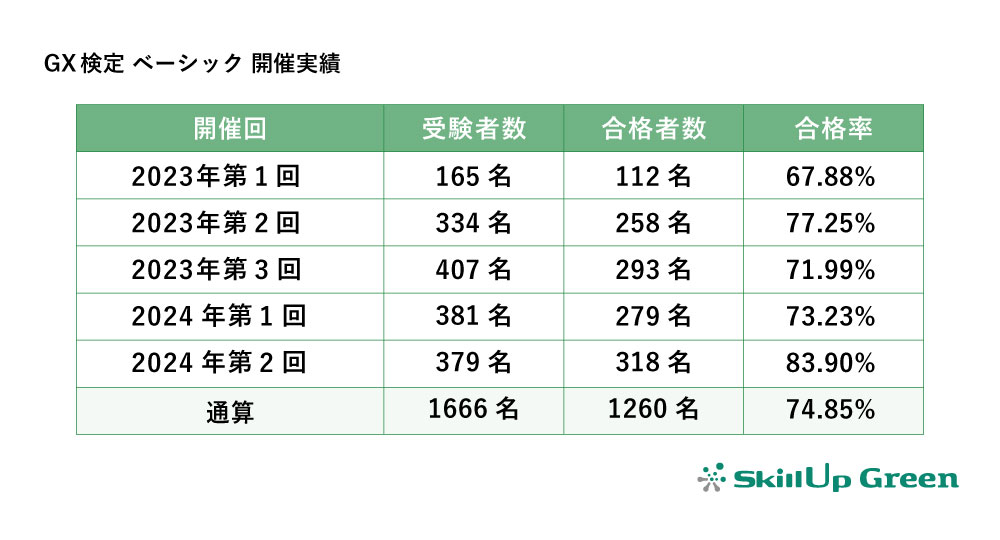 お知らせ 2024.06.01 2024年第2回GX検定 ベーシック結果発表 2024年4月8日(月)~ 4月28(日)にかけて開催した2024年第2回GX検定 ベーシックの結果発表を行いました。 今回は379名が受験し、318名が合格しました。これまでの累計合格者数は1260名となっています。 TOP お知らせ一覧 2024年第2回GX検定 ベーシック結果発表