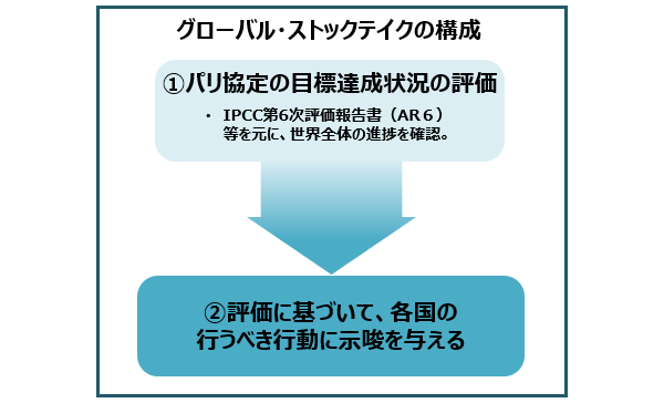 具体的には、各国が提出する「国が決定する貢献(NDC)」と呼ばれる削減目標や行動計画の進捗を、データに基づきレビューし、科学的な知見や政策的な進展、達成状況などを総括します。