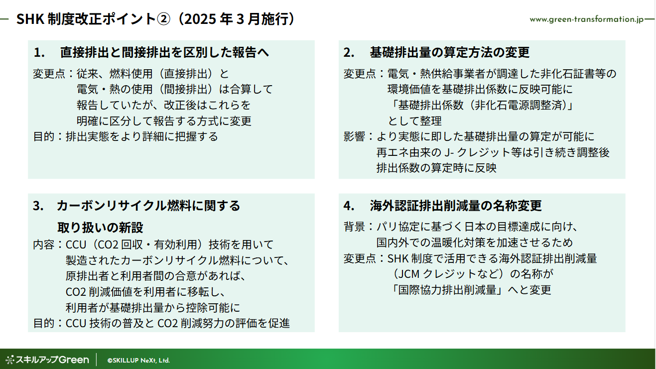 SHK制度は、温室効果ガス排出削減を社会全体で進めるための重要な制度です。単に報告を義務付けるだけでなく、事業者の経営姿勢や体制構築を促す役割を持っています。改正が進む中で、制度の要求水準は着実に高まっています。