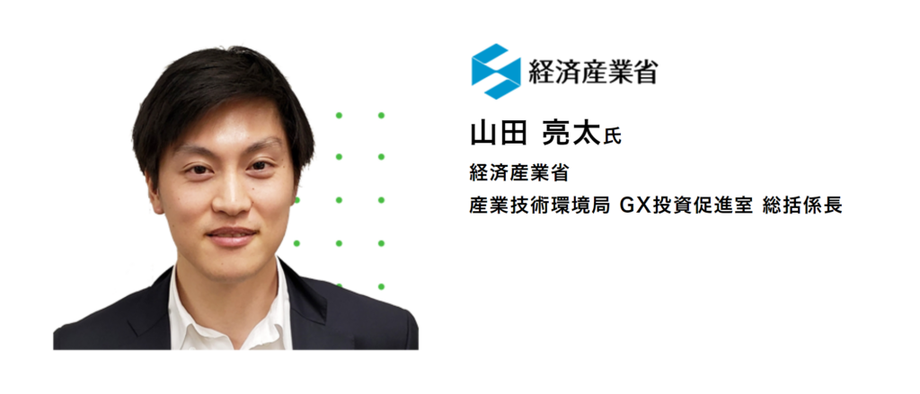 産業技術環境局GX投資促進室の山田氏より、日本政府としてどのようにGXを推進するのか、その方針や展望について解説いただきました。