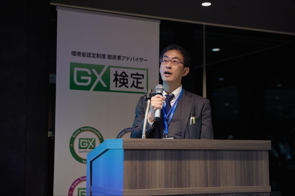 GX検定ベーシック、アドバンストは環境省認定制度「脱炭素アドバイザー」の認定資格となっています。今回、開会の挨拶として環境省 清水室長から、GX推進の意義や合格者への期待について熱いメッセージが送られました。