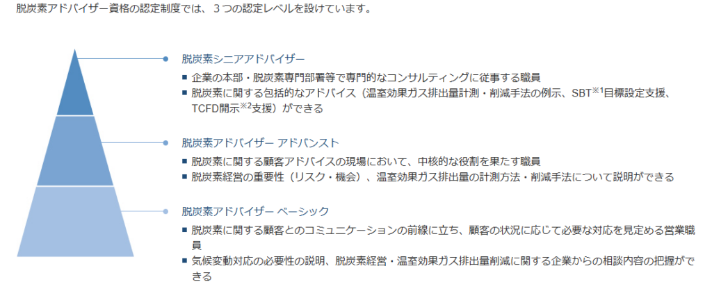 「脱炭素アドバイザーベーシック」認定の各資格の詳細