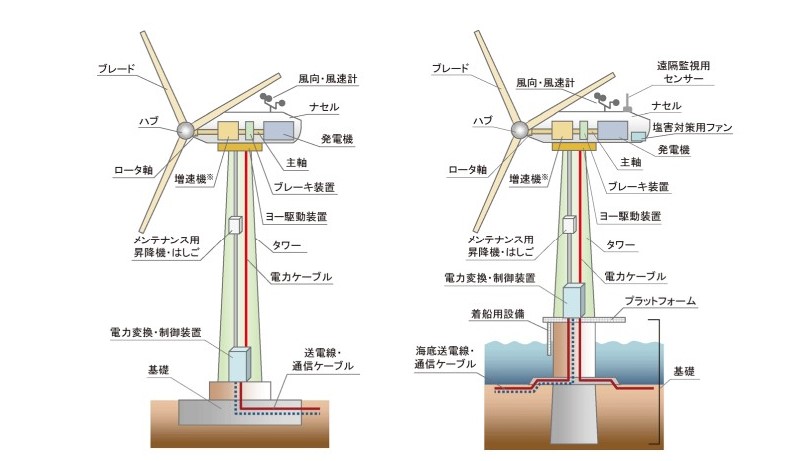 左:陸上風力 右:洋上風力
