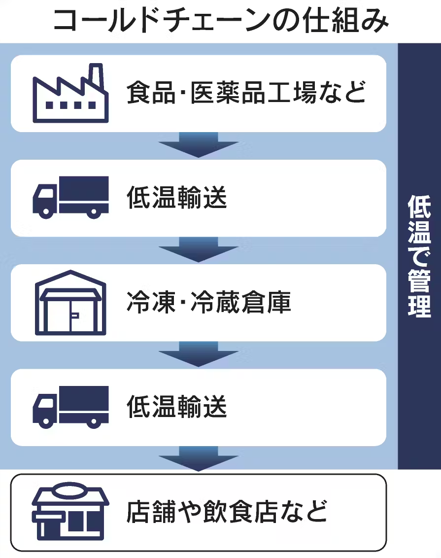 出典:コールドチェーンとは 冷凍冷蔵で鮮度を保ち流通(日本経済新聞)
